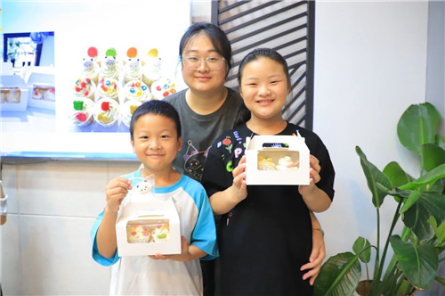 小手揉面团,大手来指导,一起挤奶油,合力做装饰……小小的实践站变成了亲子合作的创意工坊。