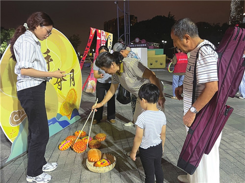 “文明风”碰撞“烟火气”,“夜实践”丰富“夜生活”。本次市集分为四大主题区域,共设置了15个市集摊位,包括氛围营造区、非遗体验区、主题打卡区、文娱互动区。琳琅满目的泥塑、糖画、吹糖人、DIY月饼吸引了孩子们的目光,科普知识问答、汉服巡礼引来了年轻人的参与;灯谜竞猜、飞花令、灵兔圈趣、趣味投壶等游戏将老老少少“团”在了一起,节日的氛围格外浓厚。